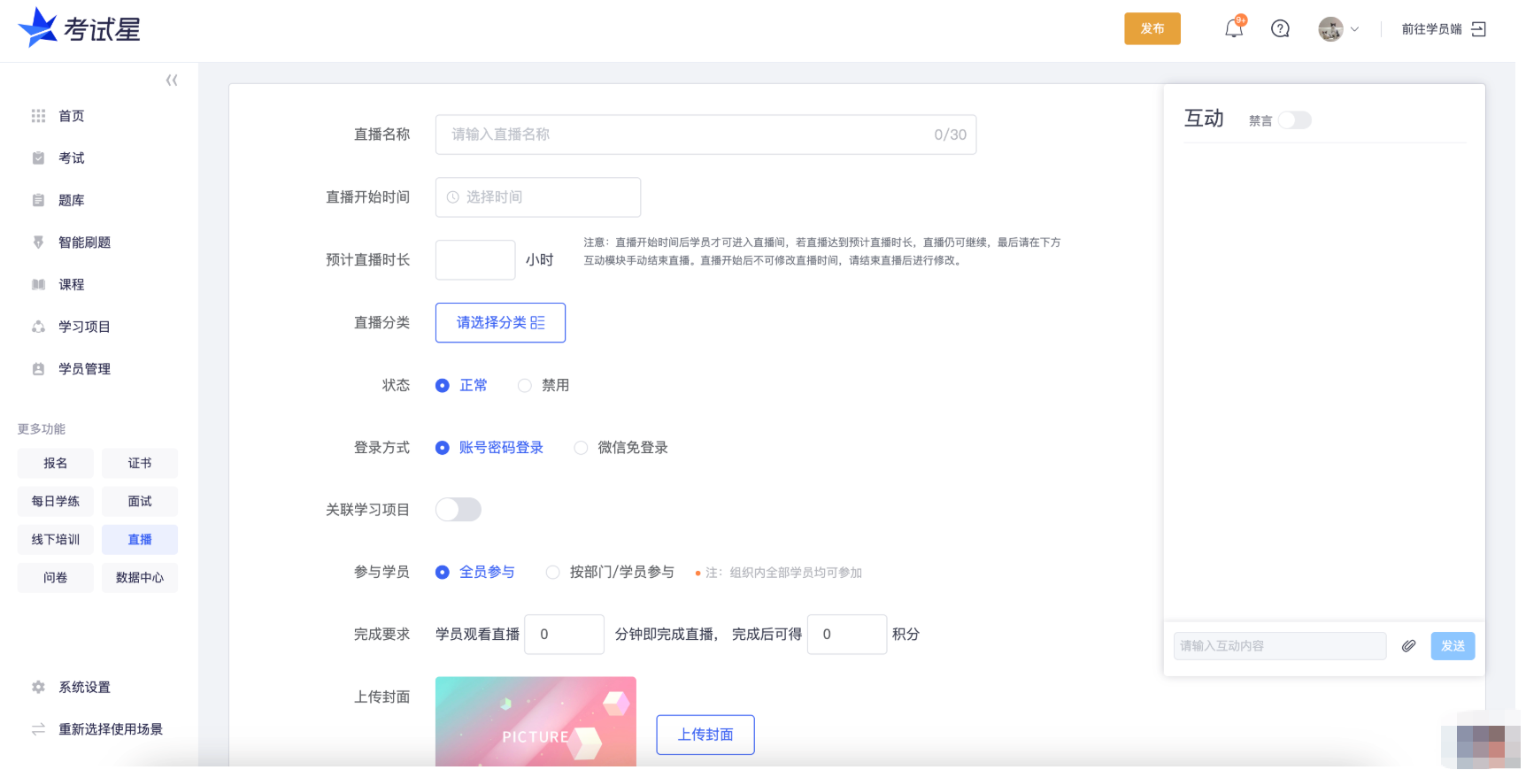 直播地址: 给学员使用,学员可通过此链接访问直播间。